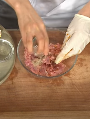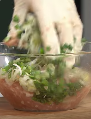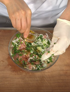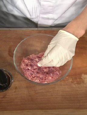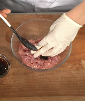 1. 다진 돼지고기(200g)에 굴소스(½T),