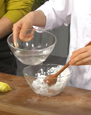 물(¼컵/50ml) 섞어 튀김옷 만들기