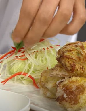 6. 예열된 기름에 튀긴 배추말이 넣어 한 번 더 튀겨내기