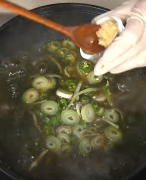 손질한 채소, 다진 마늘(½T) 넣어 2분 정도 끓이기